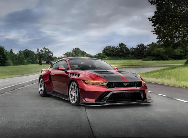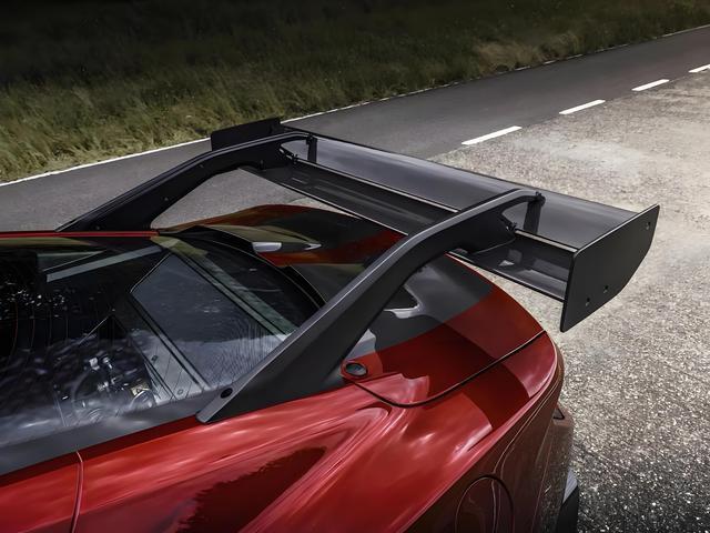 Mustang GTD基于第七代Mustang进行了大量的赛道化工程设计升级,包括空气动力学部分,配备主动式尾翼、车头襟翼及DRS系统,可在不同驾驶模式下调整下压力与风阻平衡;前悬采用不等长双叉臂结构,后悬为推杆式多连杆布局,搭配Multimatic自适应滑阀减震器(ASV),赛道模式可降低车身40毫米;轻量化方面,车身覆盖件大量使用碳纤维,轮毂为锻造镁合金材质,整车重量较标准版Mustang大幅降低。标配碳陶制动系统、Recaro赛车座椅、五点式安全带及防滚架,同时保留公路合法性。轮胎规格为前325/30ZR20、后345/30ZR20,搭配米其林Pilot Sport Cup 2R高性能胎。