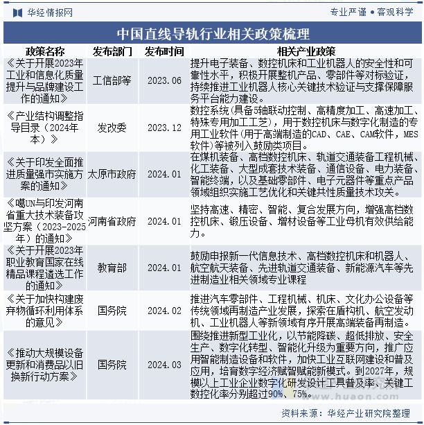 相关报告:华经产业研究院发布的《2025-2031年中国直线导轨行业市场调查研究及发展趋势预测报告》