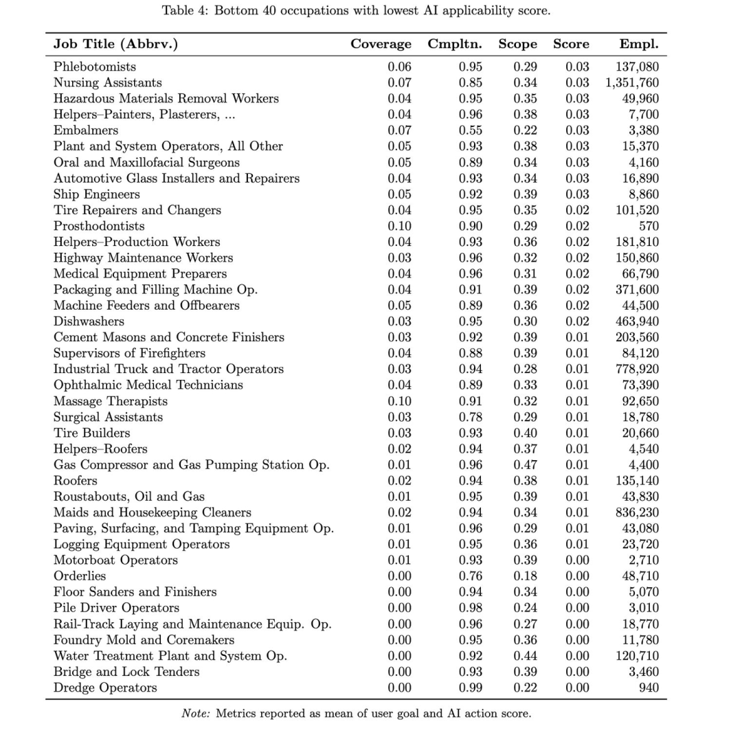 不过,微软还抛出了一个安慰剂,「我们的数据并未表明AI正在执行任何一种职业的全部工作活动」。